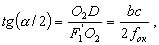 Углы α и β обычно малые, так как расстояние до предмета несравнимо больше размеров трубы, поэтому вместо тангенсов этих углов можно взять их значения в радианной мере: tg(α/2) = α/2 и tg(β/2) = β/2, откуда следует, что отношение углов α и β равно отношению тангенсов их половинных значений: