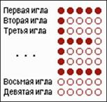 Рис. 4.44. Символ матричным принтером формируется на основании матрицы. Основными недостатками данного типа принтеров являются низкая скорость работы и высокий шум, однако благодаря дешевизне копии (расходным материалом, по сути, является только красящая лента) и возможности работы с непрерывной (рулонной, фальцованой) и копировальной бумагой они незаменимы, когда требуется печать на непрерывной бумаге (лаборатории, промышленность, бухгалтерия, ведение отчетов, печать чеков в магазинах, банкоматах и т.п), многослойных бланках (например, авиабилеты), или минимальная стоимость печати. Сам факт ударной печати затрудняет внесение несанкционированных изменений в документ (финансовая сфера).