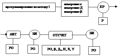 Значение b, До,Н,Х,У высвечиваются на табло последовательно через 4...6 с. В зависимости от решаемой задачи порядок ввода поправок и порядок измерения может быть любым и неполным, например, при работе по методу I после программирования и перевода в режим Р нажатием кнопок и ОТСЧЕТ можно сразу определить горизонтальное проложение До, В этом случае нет необходимости при программировании вводить поправки Ао, DН, Хо, Уо и определять опорное направление b. При измерении Д, До, h, Х, У для коротких длин линий или если не требуется высокая точность измерений, определение коэффициентов Тк и Кп допускается не определять и не вводить, так как их влияние пропорционально измеренному расстоянию и для коротких линий незначительно.