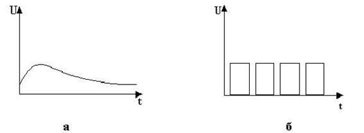 Рис.5.2. Две формы предоставления информации в машинах: а- аналоговая; б- цифровая импульсная.