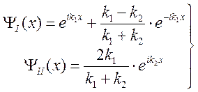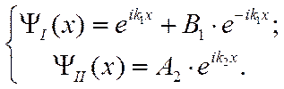 Введя обозначения и , можем записать решение уравнения Шредингера в областях I и II соответственно: