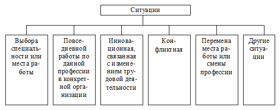 Рис.8. Теории мотивации Мотивационное ядро – это совокупность ведущих мотивов, которыми руководствуется работник в определенный период времени в своем трудовом поведении. Структура мотивационного ядра различна и зависит от конкретных трудовых ситуаций. Наиболее часто встречаются следующие трудовые ситуации (рис. 9.).
