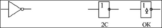 Рис. 3.1. Условные обозначения инверторов: зарубежные (слева) и отечественные (справа)