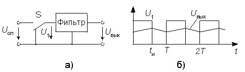 Очень часто ЦАП входит в состав микропроцессорных систем. В этом случае, если не требуется высокое быстродействие, цифро-аналоговое преобразование может быть очень просто осуществлено с помощью широтно-импульсной модуляции (ШИМ). Схема ЦАП с ШИМ приведена на рис. 1а.