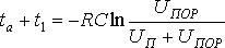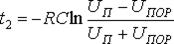 В уравнение (6) член UПР не входит, а это значит, что в данном случае период колебаний уже не зависит от падения напряжения на открытых входных диодах инвертора DD1.1. Если, как и в предыдущем случае, допустить, что UПОР = 0,5 UП, то последняя формула упростится: