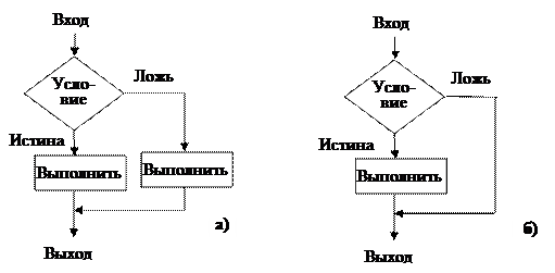 Рис. 5. Блок-схема ветвящегося алгоритма; а – полное ветвление, б – непол-ное ветвление.