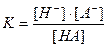 , так как [H+] = [A-], то получаем