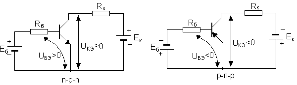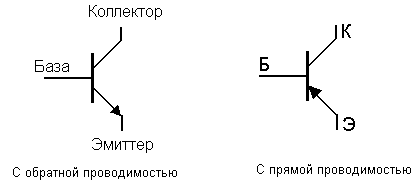 С прямой проводимостью (p-n-p) С обратной проводимостью (n-p-n)