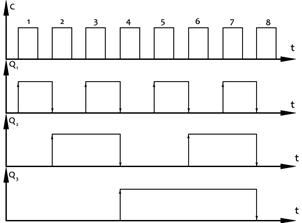 Более выгодным является счетчик с параллельным переносом информации, в котором срабатывание всех триггеров происходит одновременно при поступлении строб-сигналов на все входы.