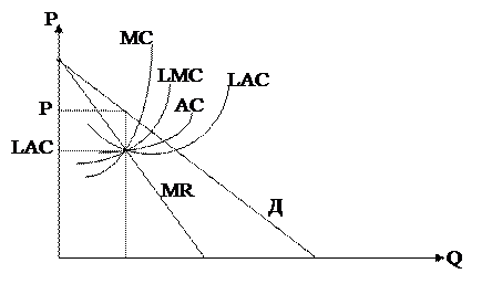 Утримання монопольної позиції фірмою на протязі тривалого періоду можливо тому, що вільний вхід на ринок відсутній. Якщо монопольна фірма прибуткова, вона може сподіватися на прибутки як у короткостроковому, так і в довгостроковому періодах. У довгостроковому періоді прибутку монополістів загрожує розробка товарів – субститутів. Поступово монополіст може прийти до нульового економічного прибутку. У; цьому стані він досягає довгострокової рівноваги. Максимізація прибутку або мінімізація витрат у довгостроковому інтервалі передбачає обсяг випуску, за якого граничні витрати дорівнюють граничному доходу. Маючи можливість контролювати одночасно і випуск, і ціну, монополія завищує ціни, скорочуючи при цьому обсяги виробництва.