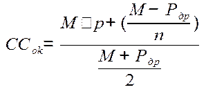 где: СС ок – стоимость заемного капитала, привлекаемого засчет эмиссии облигаций, % М – нарицательная (номинальная) стоимость облигации i (или величина займа) р – ставка % облигационного займа, доли % n – срок погашения облигации Р др – чистая выручка от размещения облигации или текущая рыночная стоимость облигации
