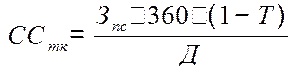 где: СС кк – стоимость коммерческого кредита в форме долгосрочной отсрочки платежа с оформлением векселя I кк – ставка % за вексельный кредит