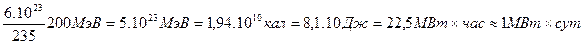 Превращающуюся в тепло энергию обычно округляют до 200 МэВ на одно деление, что в пересчете на 1 г разделившегося 235U дает: