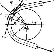 Соотношение натяжений ведущего F1 и ведомого F2 ветвей при работе без учета центробежных сил определяют по известному уравнению Л. Эйлера, выведенному для нерастяжимой нити.