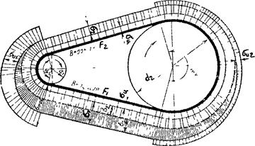 При вращении шкивов под действием центробежных сил ремень испытывает дополнительные напряжения растяжения