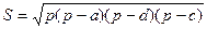 алг Вычисление площади треугольника (вещ а, в, с, S)