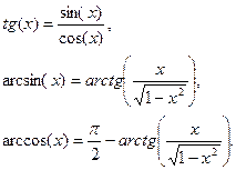 Остальные часто встречающиеся функции (тангенс, арксинус и т.д.) моделируются из уже определенных с помощью известных математических соотношений: