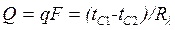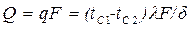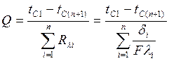 Отношение λF/δ называется тепловой проводимостью стенки, а обратная величина δ/(λF) термическим сопротивлением стенки и обозначается Rλ. Пользуясь понятием термического сопротивления, формулу для расчета теплового потока можно представить в виде