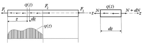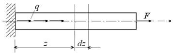 q (z) = g .A (z) Между интенсивностью распределенной нагрузки и нормальной силой в сечении существует дифференциальная зависимость, которую находят из рассмотрения равновесия выделенного из стержня элемента длиной dz.