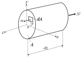 Если представить себе стержень, состоящим из тонких продольных элементов, торцы которых образуют плоскости поперечных сечений, то все они будут удлиняться одинаково. Следовательно, напряжения в каждой точке поперечного сечения так же будут одинаковы, что позволяет однозначно определить их из интегрального условия равновесия: