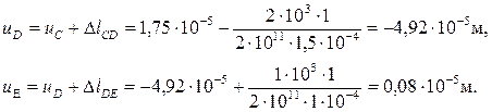 Аналогично находим перемещения остальных характерных сечений.