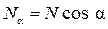 Проекции продольной силы на нормаль u и на плоскость сечения будут равны