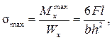 Эпюра напряжений, показанная на рис. 9.5, б, как и предыдущем случае, имеет вид квадратной параболы, имеющей максимум в центральной части сечения (у = h/ 6). Наибольшее напряжение равно