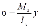 В случае изгиба в двух плоскостях, напряжения можно найти в виде алгебраической суммы: