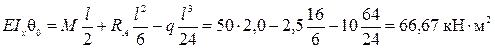 До вертикальной черты стоят слагаемые от нагрузок, приложенных на первом силовом участке, т.е. между сечениями А и В. При вычислении перемещений на этом участке нужно пользоваться только этими членами уравнений. Для нахождения перемещений на втором участке необходимо использовать все члены универсальных уравнений, включая стоящие за чертой. Определим начальные параметры EIx q0 и EIxv 0. Начало координат выбрано нами в сечении А, где расположена опора, следовательно