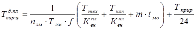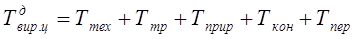 де Ттех – тривалість усіх технологічних операцій, годин; Ттр – тривалість транспортних операцій, годин; Тприр – тривалість природних процесів, годин; Ткон – тривалість контрольних операцій, годин; Тпер – сумарна тривалість перерв, годин. У машинобудуванні і приладобудуванні транспортні операції найчастіше бувають або малі в порівнянні з іншими операціями, або виконуються паралельно з іншими операціями. Тому, при розрахунках