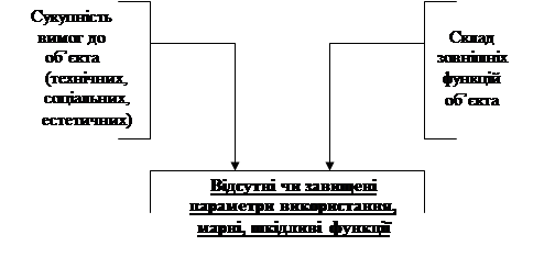 Деякі споживчі властивості для свого повного опису вимагають ще і кількісної характеристики, що називається параметром використання. Визначити функцію – значить сформулювати її словесно й установити параметри використання. Формула формулювання функції: < дієслово + іменник > + < доповнення > Функції класифікуються: а) У залежності від області прояву функції: - зовнішні (функції, що визначають зв'язок аналізованого об'єкта з зовнішнім середовищем. Визначаються, коли об'єкт розглядається як елемент більш великої системи). - внутрішні (визначаються конструкцією, принципом дії об'єкта. Для їхнього визначення досліджуваний об'єкт розглядається як система). б) У залежності від призначення виробу: Зовнішні функції поділяються на: - головні (функції призначення); - другорядні (всі інші). Внутрішні – на: - основні (призначені для реалізації головних зовнішніх функцій); - допоміжні (безпосередньо реалізуючі другорядні чи внутрішні функції, що як би допомагають основним реалізувати призначення об'єкта). Крім даної класифікації зовнішні функції класифікуються з позицій своєї корисності, тобто відповідно до поставлених вимог до об'єкта (рис. 7.1).