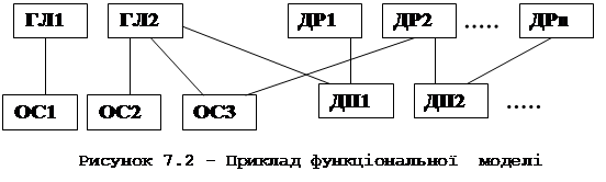 На основі класифікації функцій будується функціональна модель, що показує графічно субординацію зовнішніх і внутрішніх функцій об'єкта. Після побудови функціональної моделі в реальному об'єкті визначаються матеріальні носії, що матеріально реалізують самий нижчий рівень функцій функціональної моделі. Матеріальними носіями можуть бути: - окремі матеріальні елементи (деталі, блоки, матеріали); - визначені способи їхньої обробки (шліфування, заливання компаундом...); - інтелектуальні продукти (обчислювальна програма). - в економічних об'єктах аналізу - окремі працівники, відділи управління. Матеріальні носії, зображені разом з функціональною моделлю, називаються функціонально-структурною моделлю (ФСМ). Вона показує взаємозв'язок функцій і матеріальних носіїв, їх реалізуючих. ФСМ може бути представлена у виді схеми читаблиці. Якщо зображення ФСМ буде у виді схеми, то кожна функція на моделі може зображуватися таким чином (рис. 7.3):