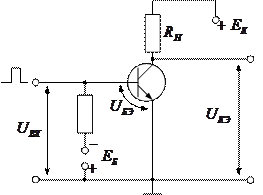В реальных схемах переключение происходит не мгновенно, а в течение некоторого времени. Основу электронного ключа составляет нелинейный активный элемент. Простейшая схема транзисторного ключа подобна схеме усилителя, однако она отличается режимом работы транзистора. При работе в ключевом режиме рабочая точка транзистора может находится только в двух положениях: в области отсечки та в области насыщения. Для обеспечения режима отсечки на вход ключа необходимо подать отрицательное напряжение