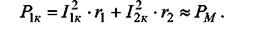 В опыте короткого замыкания (U2 = 0) напряжение UM2к, индуктируемое во второй обмотке равно Uv2k = I2к • r2 +j xS2 • I2к, где I2к • r2 - напряжение на резистивном сопротивлении вторичной обмотки; xS2 • I2к - напряжение на индуктивном сопротивлении рассеяния вторичной обмотки. Напряжение первичной обмотки в опыте короткого замыкания U1к при токе I1к = I1н составляет 5-10 % от номинального U1н. Поэтому действующее значение напряжения индукции UM2к составляет лишь 2-5 % от действующего значения UM2 в рабочем (номинальном) режиме. Пропорционально значению UM2 уменьшается магнитный поток Ф0 в магнитопроводе, а вместе с ним и мощность потерь в магнитопроводе Pс, пропорциональная Ф0. Следовательно, в опыте короткого замыкания почти вся мощность трансформатора P1к равна мощности потерь в проводах первичной и вторичной обмоток (потери в меди):