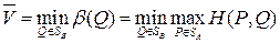 Верхней ценой (или минимаксом) матричной игры в смешанных стратегиях называется величина