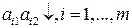 Рис. 11.1 Алгоритм "В" 1. Берем горизонтальный отрезок [0,1]. 2. Через концы отрезка [0,1] проводим к нему два перпендикуляра: левый и правый. 3. На левом перпендикуляре, лежащем на вертикальной числовой оси, от точки 0 его пересечения с отрезком [0,1] откладываем все элементы первого столбца матрицы А. 4. На правом перпендикуляре от точки 1 его пересечения с отрезком [0,1] откладываем (как на вертикальной числовой оси) все элементы второго столбца матрицы А. 5. Каждую пару точек, изображающих элементы