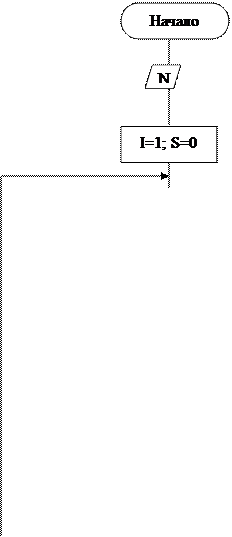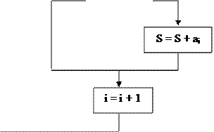 Рис. 5.2.10. Алгоритм типа «развилка, вложенная в цикл, с предусловием», для нахождения суммы положительных чисел и N возможных
