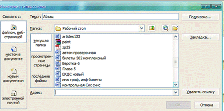 Гиперссылка (англ. hyperlink) в компьютерной терминологии — часть электронного документа, ссылающаяся на другой элемент (команда, текст, заголовок, примечание, изображение) в самом документе, на другой объект (файл, приложение), расположенный на локальном компьютере или в компьютерной сети, либо на элементы этого объекта. В приложении MS PowerPoint гиперссылка осуществляет связь одного слайда с другим в одной и той же презентации (например, гиперссылка на произвольный показ) или со слайдом в другой презентации, адресом электронной почты, веб-страницей или файлом. Создание гиперссылки на слайд в той же презентации 1. В обычном режиме просмотра выделите текст или объект, который нужно использовать как гиперссылку. 2. На вкладке Вставка в группе Связи нажмите кнопку Гиперссылка. 3. В поле Связать с… выберите место в документе. 4. Выполните одно из предложенных действий: · Ссылка на слайд в текущей презентации. · В поле Выберите место в документе…. щелкните слайд, который нужно использовать как цель гиперссылки. Внутренняя гиперссылка устанавливает связь между слайдами презентации. При перемещении презентации связи, установленные между слайдами, не теряются. При вставке новых слайдов в тело презентации, логический центр PowepPoint автоматически корректирует старые связи.