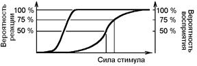 Обычно принимают за пороговую такую силу стимула, вероятность восприятия которого равна 50 или 75 %. Более низкие значения силы стимула считаются подпороговыми, а более высокие — надпороговыми. ++602+ Реакция на подпороговые стимулы возможна, но она неосознаваема (не доходит до порога ощущения).