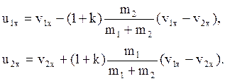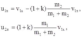 Все эти уравнения получены в предположении, что поступательное движение АТТ до удара происходит в одном направлении. Если второе АТТ до удара было неподвижно, то в формулах (8.16) и (8.17) следует положить