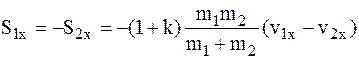 т. е. количество движения СМТ в начале и конце удара одинаково. Проектируя обе части этого векторного равенства на ось С1x положительное направление на которой будем считать от С1 к С2, получим: