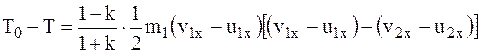 где разности Равенство (8.21) составляет содержание теоремы Карно. Теорема: Кинетическая энергия, потерянная СМТ, при прямом центральном и не вполне упругом ударе двух АТТ, равна