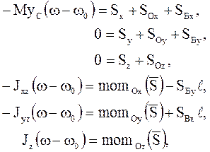 Аналогично для проекций кинетического момента АТТ после удара на оси декартовой системы координат получим: