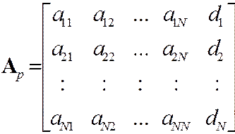d – матрица-столбец свободных членов d1,d2,…,dN