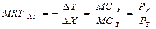 Предельная норма трансформации товара (Y) в товар (X) характеризует то количество Y, от которого следует отказаться для производства дополнительной единицы X. Т.к. предельные издержки производства X выражаются в отказе от дополнительной единицы Y, то