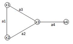 Пример: на рис.1.изображен неориентированный граф G = (X, A). X = { x 1, x 2, x 3, x 4}, A = { a 1 = (x 1, x 2), a 2 = (x 2, x 3), a 3 = (x 1, x 3), a 4 = (x 3, x 4)}.