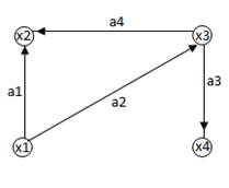 На рис.2. изображен ориентированный граф G = (X, A). X = { x 1, x 2, x 3, x 4}, A = { a 1 = (x 1, x 2), a 2 = (x 1, x 3), a 3 = (x 3, x 4), a 4 = (x 3, x 2)}.