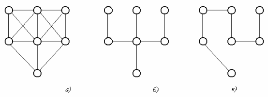 Пример. Для графа, изображенного на рис. 22 а), графы на рис. б и в являются остовными деревьями.