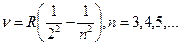 Если линия имеет цвет, то при данной частоте, а, следовательно, и энергии, атом излучает. Если линия спектра черная, то на этой частоте происходит поглощение излучения. В 1885 г. Дж.Дж. Бальмер показал, что четыре видимые линии в спектре водорода связаны между собой эмпирическим соотношением: