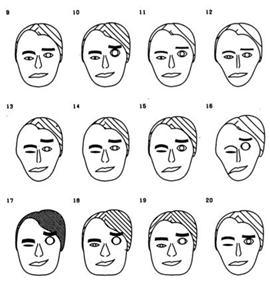 Этим способом можно отображать 10-20-мерные множества. Суть способа такова: каждому из измерений сопоставляется один из параметров схематически изображённого человеческого лица, например, первое измерение дает отношение высоты лица к ширине, второе — размер носа, третье — расстояние между глазами и т.д. Таким образом, каждой точке исходного множества будет сопоставлено лицо. Рассматривая эти лица, можно отобрать похожие между собой или же выделить абсолютно непохожие и тем самым произвести некую классификацию исходного множества.
